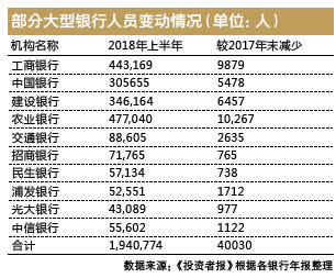 越来越少用户通过柜台办理业务,柜员减少将是大势所趋,银行近年来人员大幅减少也说明了这一现象。《投资者报》记者统计有披露数据的五大行以及7家股份制银行显示,截至今年6月底,上述银行员工人数较去年年底均有不同程度的减少,总计员工减少超过4万人。
